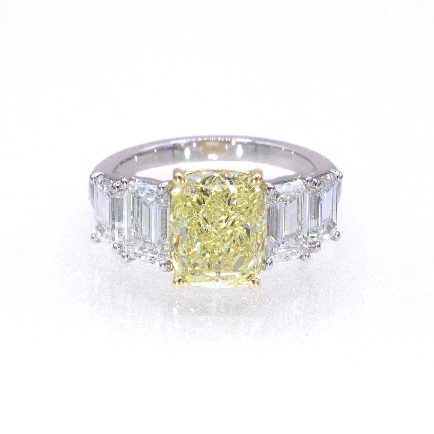 Center: 3.02 ct fancy yellow square diamond
